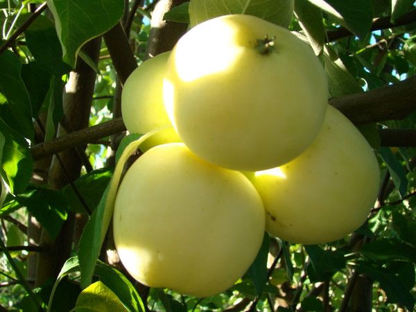 Этот раннелетний сорт яблони отличается быстрым началом плодоношения, обильным урожаем и высокой устойчивостью к зимним холодам. Плоды имеют массу 100-120 г и окрашены в зеленовато-желтый цвет. Мякоть яблок нежная, белая, сочная и обладает кисло-сладким вкусом. Период созревания плодов приходится на конец июля - начало августа. Дерево средней высоты, достигающее 3,5 метров, хорошо реагирует на регулярную обрезку и прореживание веток, что помогает избежать перегрузки урожаем и поддерживать стабильное плодоношение.